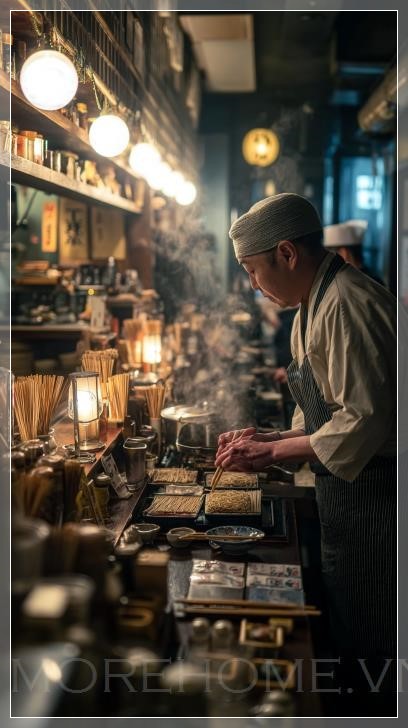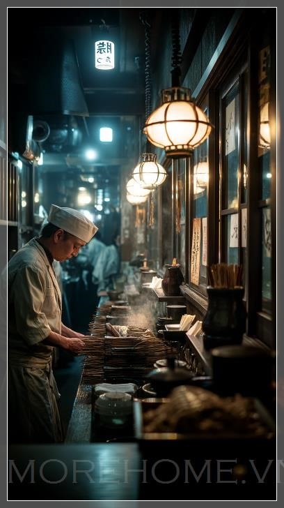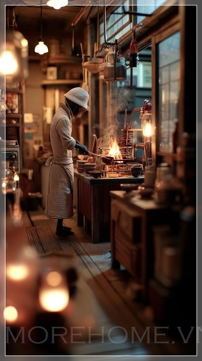 Với ánh sáng ấm áp từ các bóng đèn cổ điển, không gian bếp như một bức tranh sống động của những năm tháng xưa cũ. Cảnh sắc đậm chất điện ảnh khiến cho mỗi hành động của Ittanmomen đều mang một vẻ đẹp đặc biệt. Từng chuyển động trong công việc nấu nướng như thể không chỉ là nấu ăn mà còn là một nghi thức thiêng liêng, gắn liền với truyền thống và văn hóa lâu đời của Nhật Bản. Từng sợi soba chín dần trong nồi nước sôi tạo nên sự hài hòa tuyệt vời trong bức tranh bếp núc ấy.