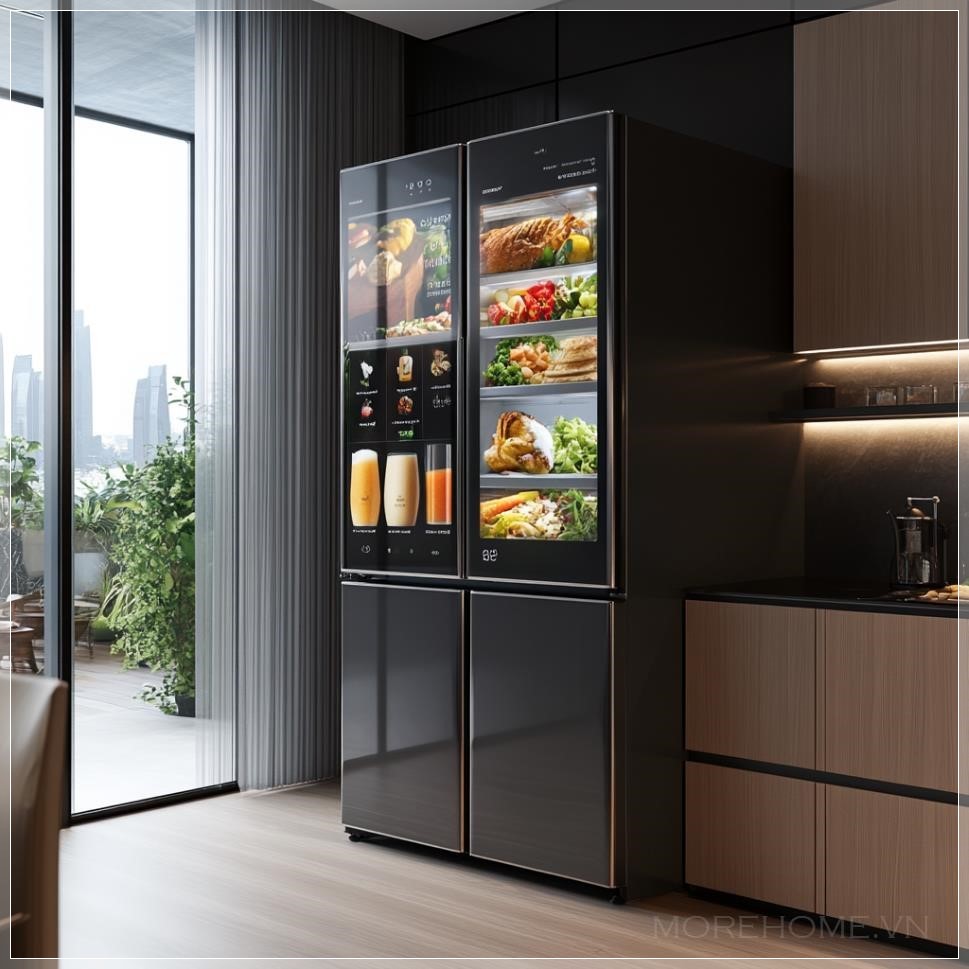 Bên cạnh đó, thiết kế của tủ lạnh thông minh cũng được tối ưu hóa để phù hợp với không gian sống hiện đại. Tủ lạnh có thể dễ dàng tích hợp vào các không gian bếp sang trọng và tiện nghi, góp phần tạo nên một không gian sống hài hòa và hiện đại. Các vật liệu tự nhiên như gỗ và đá marble được sử dụng để tủ lạnh không chỉ trở thành một thiết bị hữu ích mà còn là một phần của thiết kế nội thất, nâng cao thẩm mỹ cho không gian bếp.