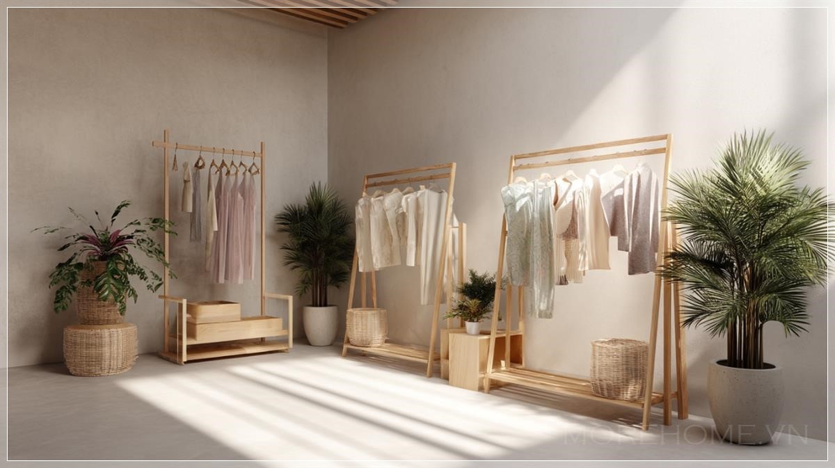Kết hợp giữa các yếu tố thiết kế tối giản và sử dụng vật liệu thiên nhiên trong các cửa hàng boutique không chỉ tạo nên không gian thẩm mỹ mà còn phản ánh một xu hướng tiêu dùng ngày càng chú trọng đến tính bền vững. Trong không gian này, sản phẩm được trưng bày một cách khoa học, dễ dàng tiếp cận, không bị rối mắt nhưng lại thể hiện rõ tính chất độc đáo và giá trị của mỗi món đồ. Các vật liệu tự nhiên và việc sử dụng ánh sáng tự nhiên là những điểm nhấn mạnh mẽ trong việc tạo ra không gian hài hòa và tinh tế.