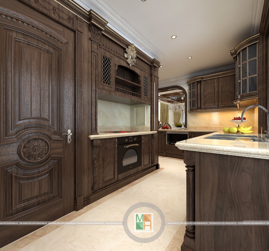 Mã: Tủ bếp gỗ tự nhiên cao cấp - Mã 002