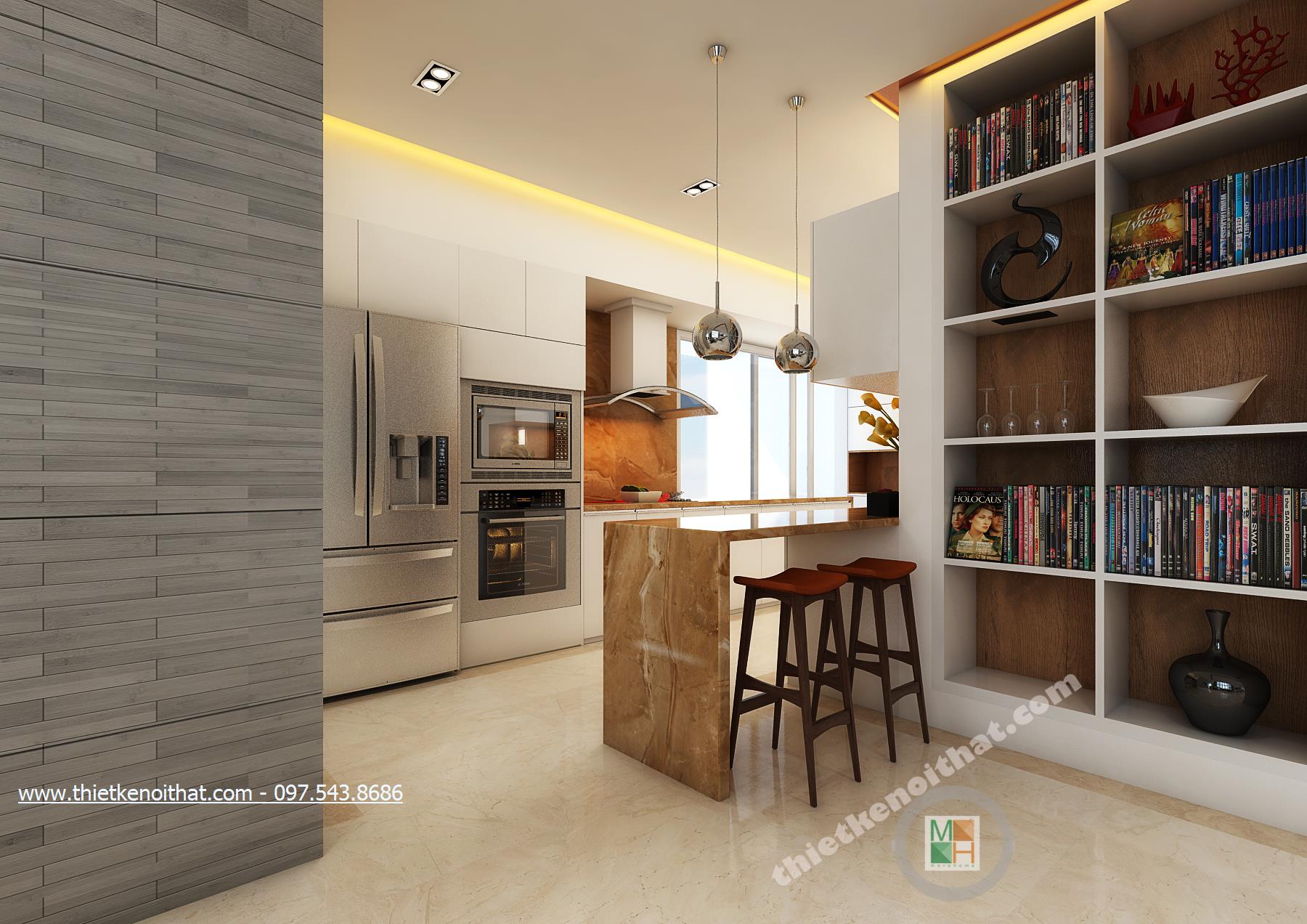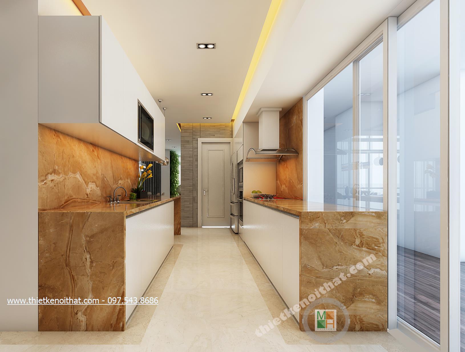 - Mẫu thiết kế tủ bếp khá thông minh phù hợp với các chị em nội trợ, không gian tạo cảm giác thoải mái, đầy đủ công năng.