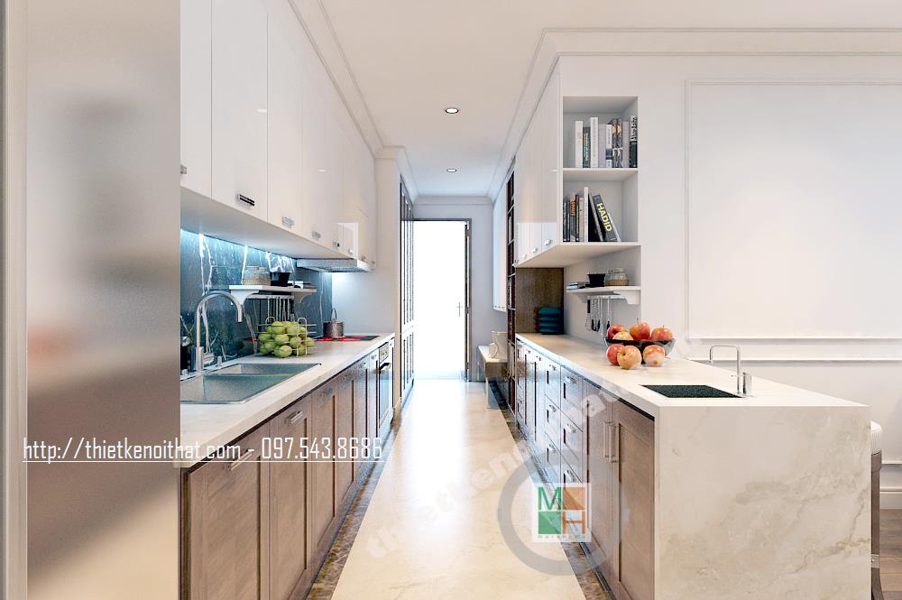 - Mẫu thiết kế tủ bếp khá thông minh phù hợp với các chị em nội trợ, không gian tạo cảm giác thoải mái, đầy đủ công năng.