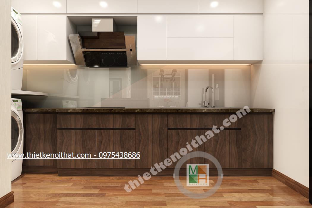 Chất liệu: Tủ bếp trên: acrylic, tủ bếp dưới: laminate