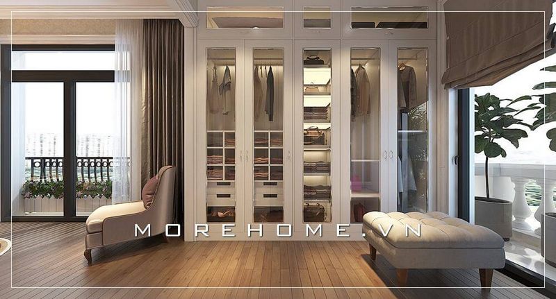Thiết kế tủ áo tân cổ điển đầy sang trọng cho phòng ngủ Master biệt thự cao cấp