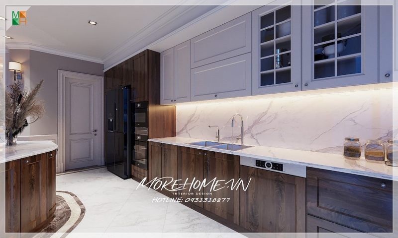 Khắc phục nhược điểm diện tích hẹp của không gian bếp trở nên tiện lợi, độc đáo trong kiến trúc tân cổ điển