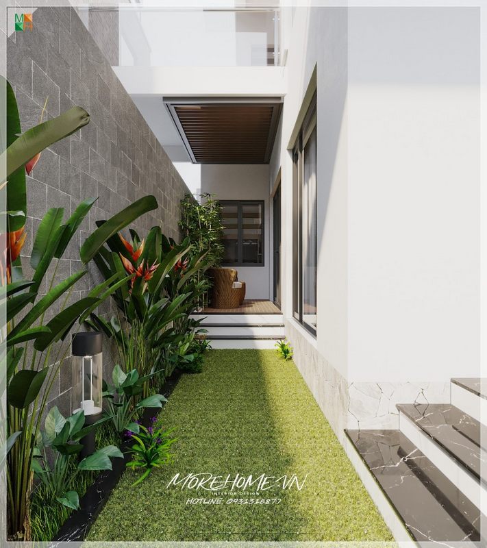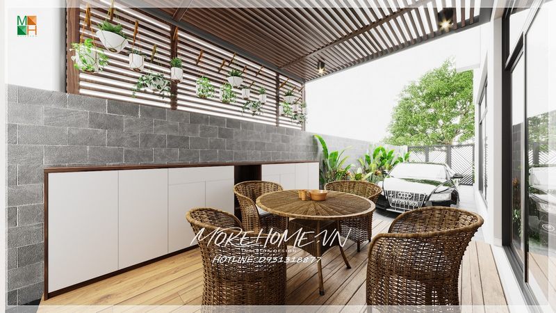 Thư thái bên ngoài hiên ngôi biệt thự, nhà phố với khoảng sân bên hiên lát gỗ mộc mạc, ấm cúng