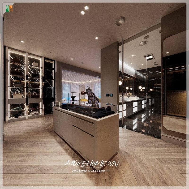 Thiết kế phòng thay đồ hỗ trơ hữu ích cho quá trình lựa chọn những món đồ chuẩn bị chỉnh chu trước khi đi ra ngoài.