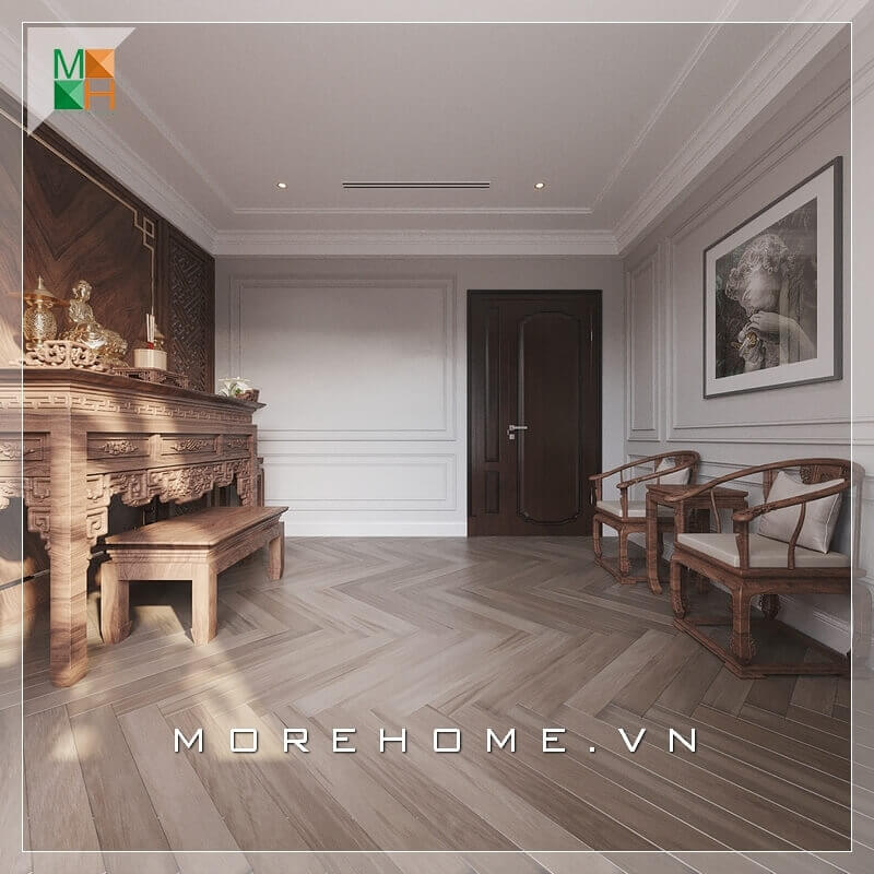 Thiết kế phòng thờ, kts không chỉ cần có am hiểu về tín ngưỡng mà còn phong thủy của tất cả những vấn đề xung quanh như vị trí để bàn thờ Phật, hiệu ứng ánh sáng, cách bố trí,.. Morehome xin giới thiệu mẫu thiết kế phòng thờ Phật Quan Âm tại biệt thự Imperia Hải Phòng.